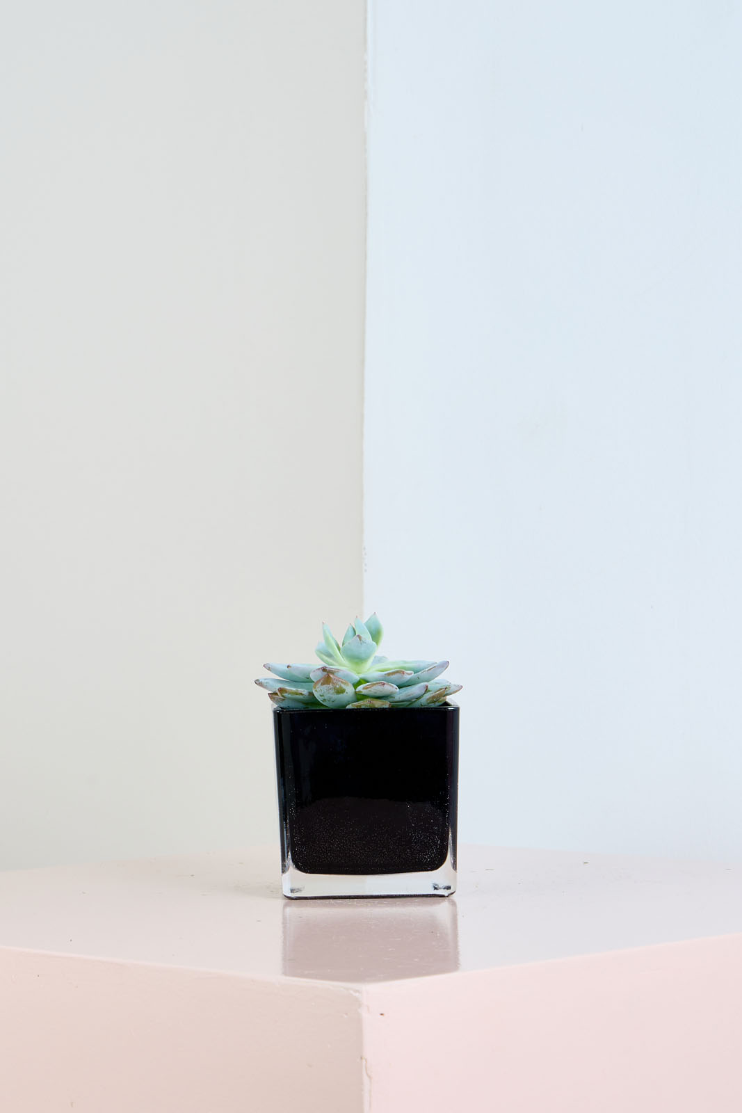 Add modern greenery to your home or office with the Echeveria Elegance succulent. Its rosette-shaped mint-green leaves, accented with blush tips, contrast beautifully against a sleek black planter.