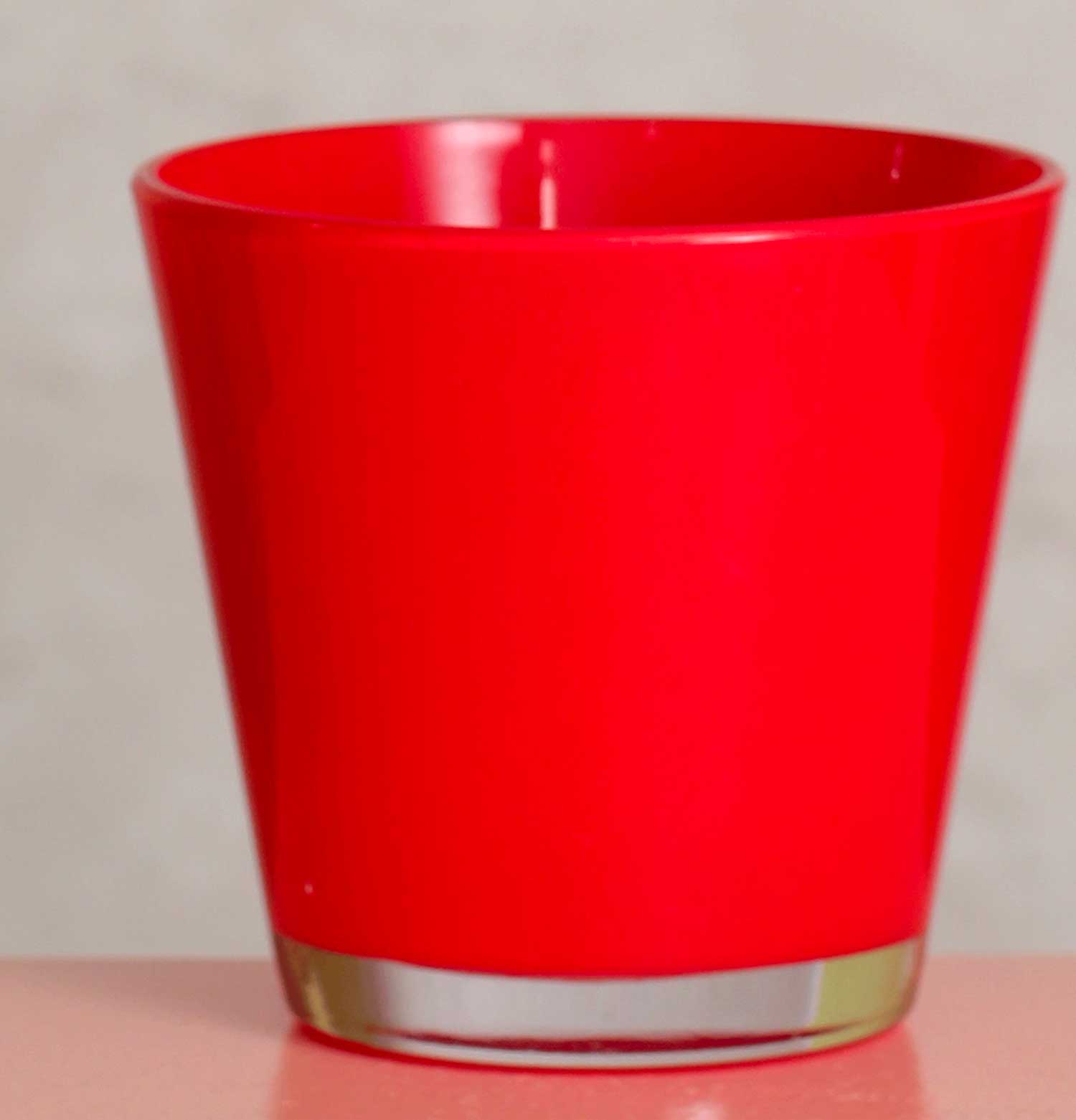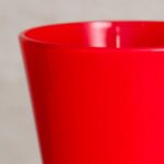 This bold red vase brings a splash of color and contemporary style to any decor. Its sleek design is perfect for showcasing vibrant flowers or standing alone as a statement piece.