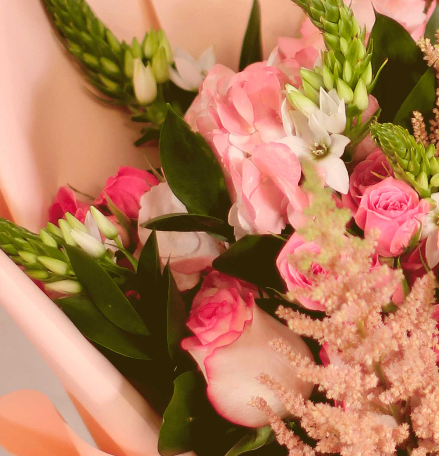 This bouquet, “Sweet N Low,” is a tender blend of soft pink blooms and delicate greenery, wrapped in a blush paper with a silky ribbon. It’s a gentle, sweet gesture perfect for moments that call for a subtle touch of affection.